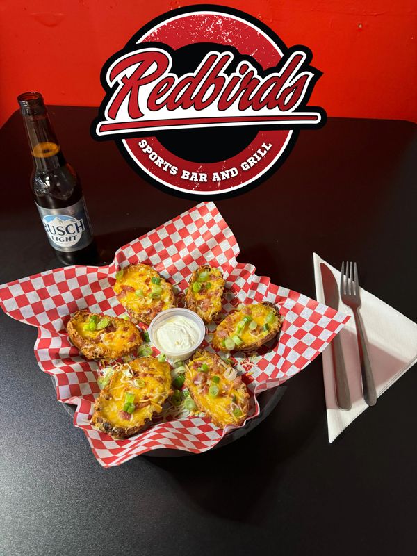 Covered with nacho cheese, bacon and topped with chives served with sour cream