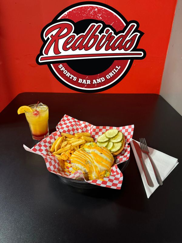 Grilled chicken breast drizzled with VooDoo sauce topped with blackened seasoning, pepperjack cheese, lettuce and pickle served on kaiser roll